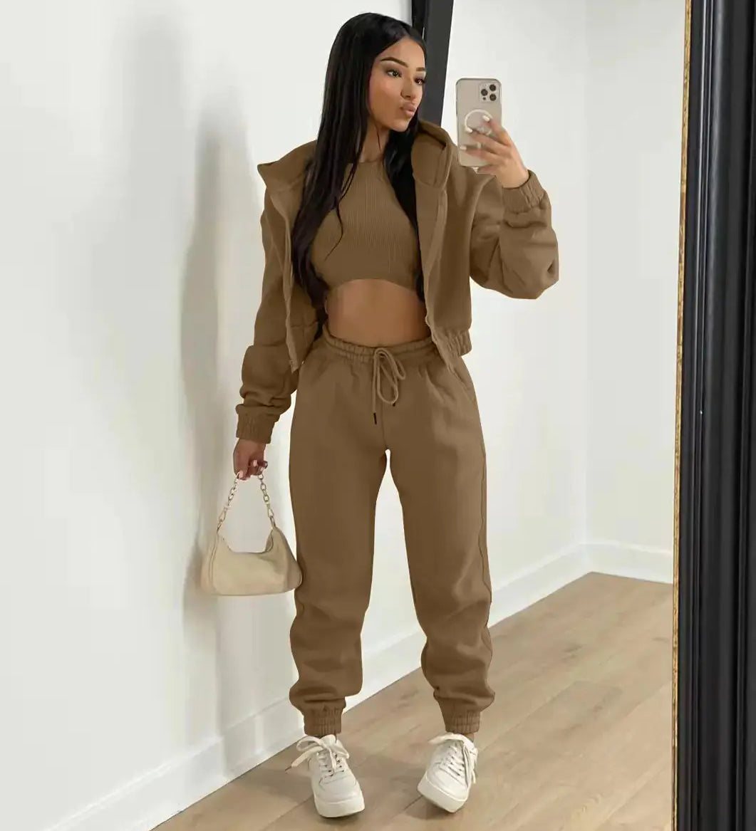 Three-Piece Loungewear Set with Cropped Hoodie, Bralette and Joggers