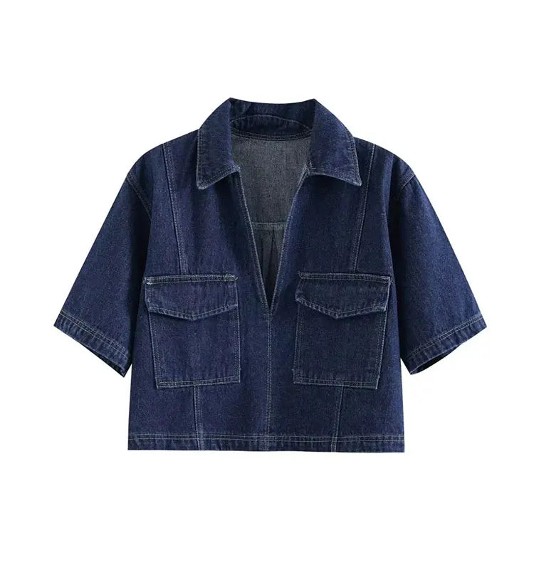Boxy Denim Co-Ord Set with Pocket Shirt and Mini Skirt