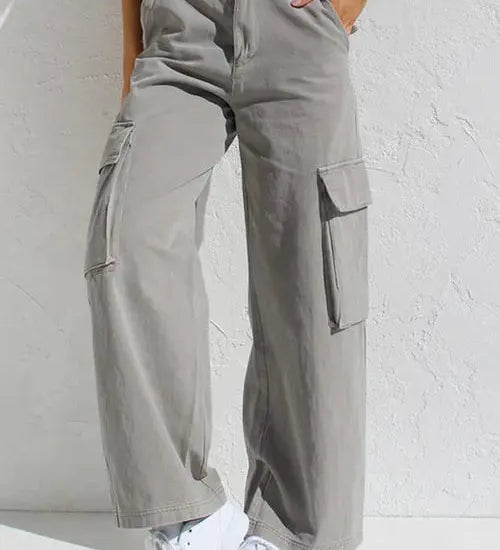 High-Waisted Wide-Leg Cargo Trousers – Light Grey | Women's Utility Pants
