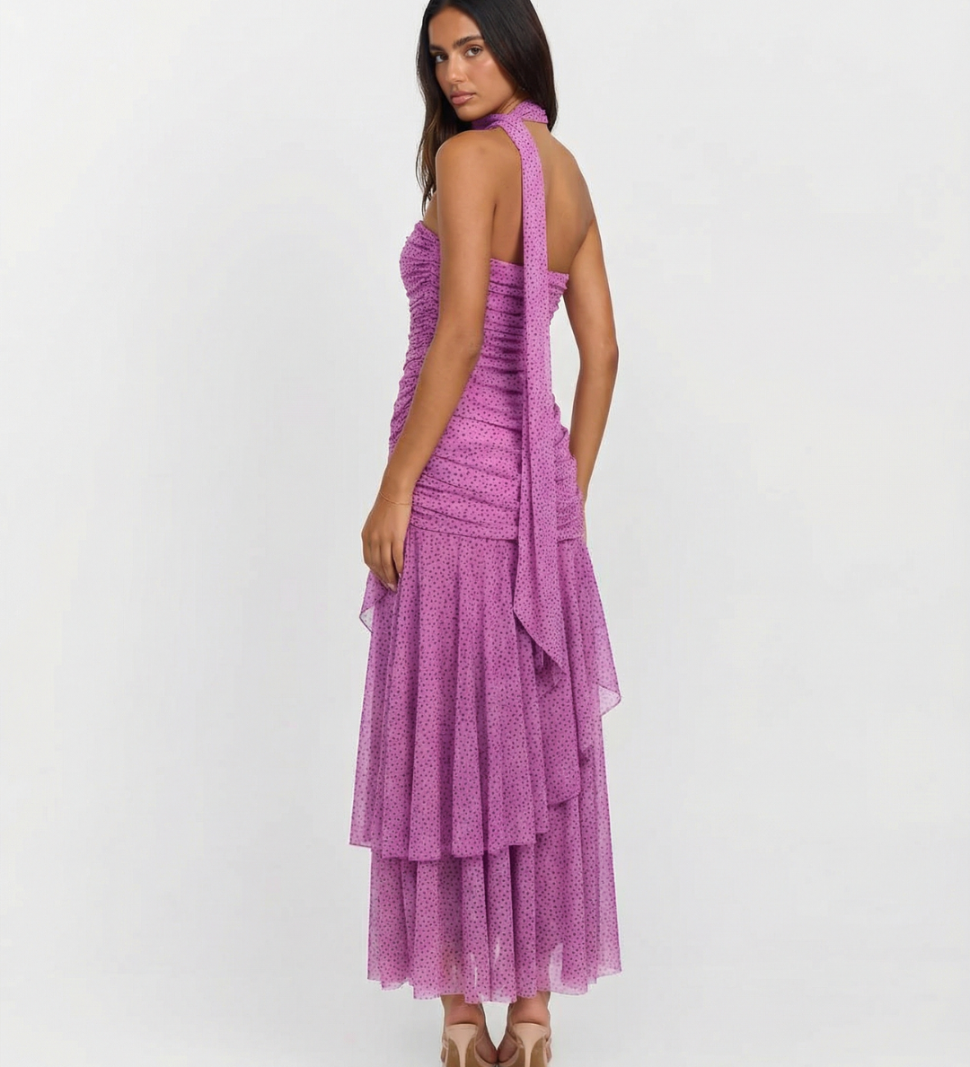 One Shoulder Pleated Maxi Dress with Draped Waist