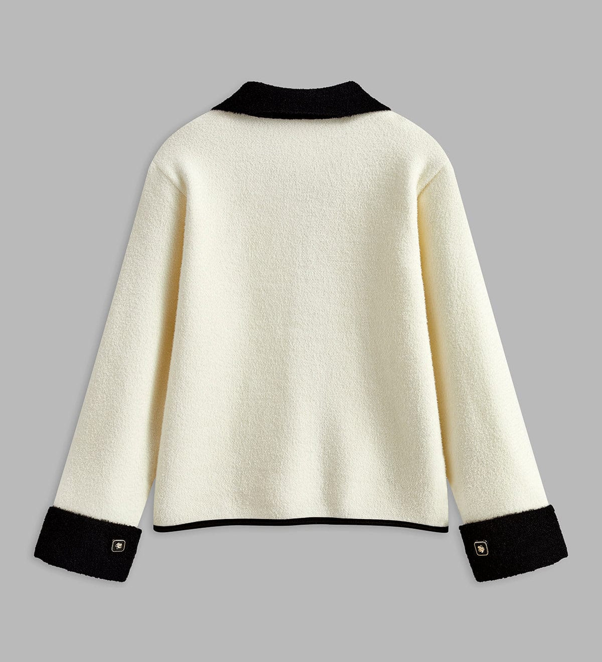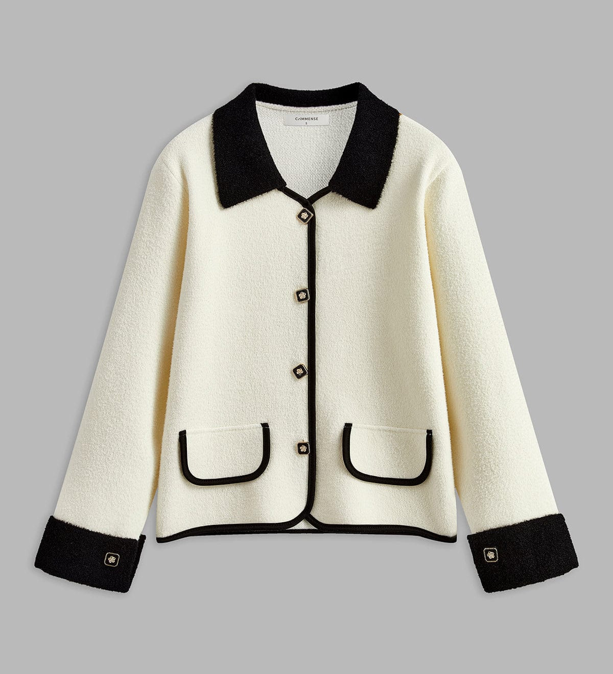 Elegant Contrast Trim Bouclé Jacket with Gold Button Detail