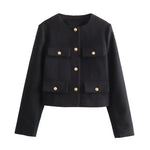 Chic Gold-Button Cropped Jacket with Pocket Detail