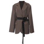 Tailored Belted Blazer Jacket with Lapel Collar