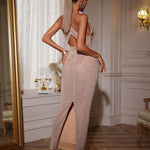 This statement piece is ideal for upscale events, parties, or nights out where you want to shine. The leg slit adds a bold touch, while the all-over shimmer catches the light with every move.