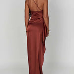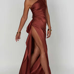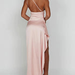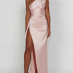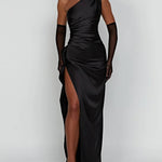 One-Shoulder Satin Maxi Dress with High Slit