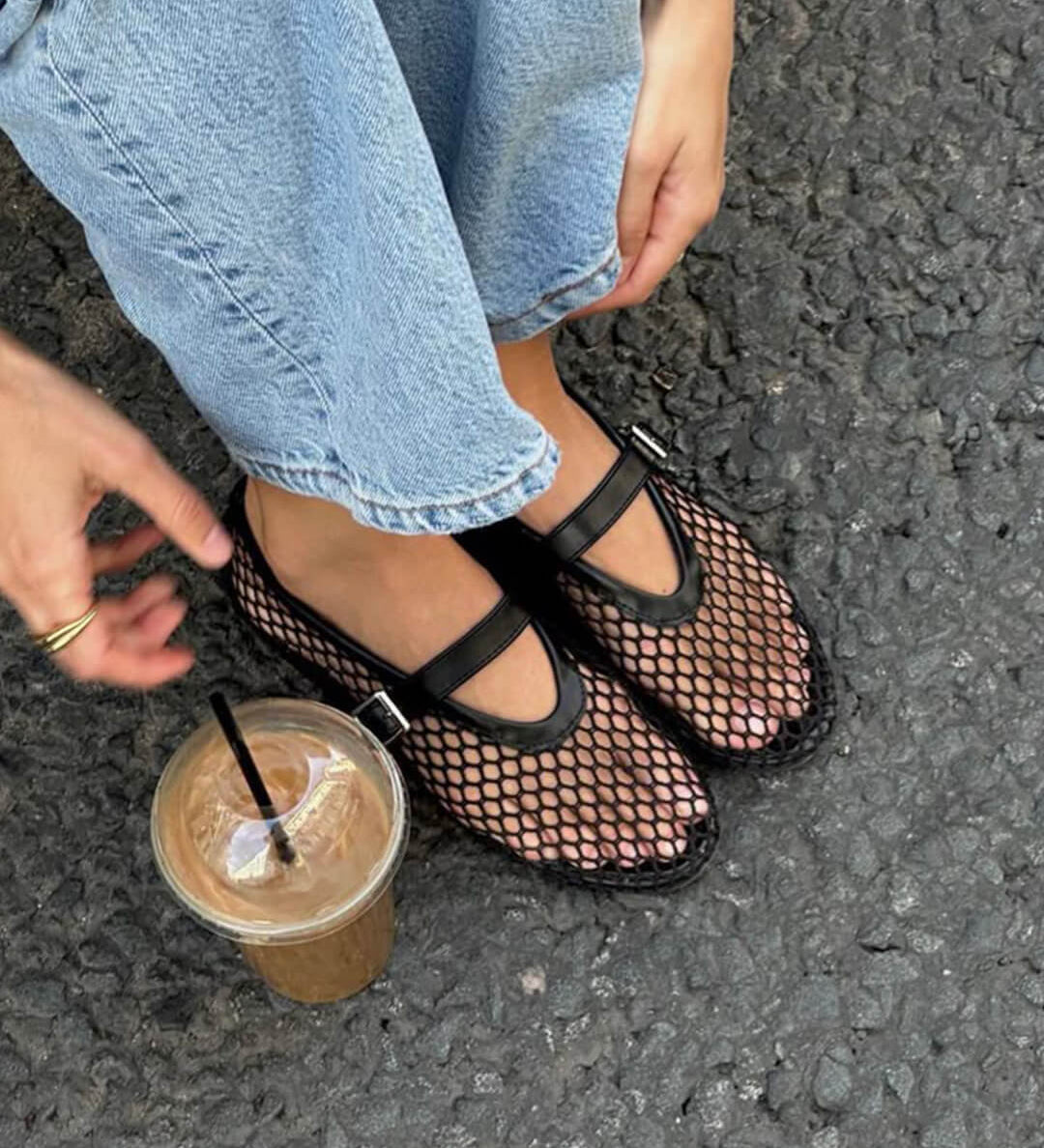 Mesh Strap Ballet Flats