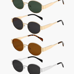 Elevate your everyday look with the Soera Cilia sunglasses – a refined blend of retro and contemporary cool. These oval-shaped sunglasses feature sleek gold metal frames paired with classic green tinted lenses, offering both style and UV protection. Lightweight yet durable, the design flatters a wide range of face shapes while adding instant elegance to your outfit.