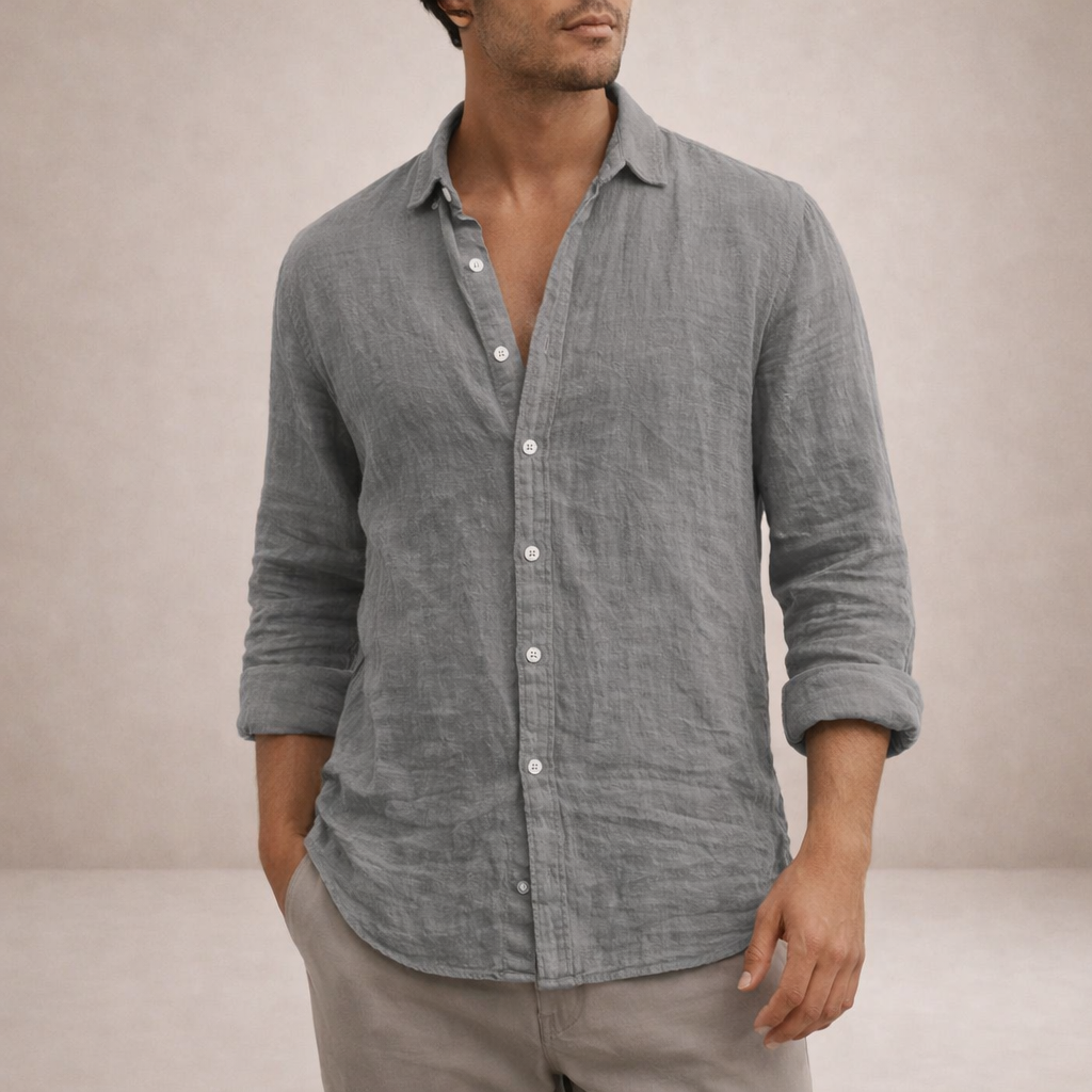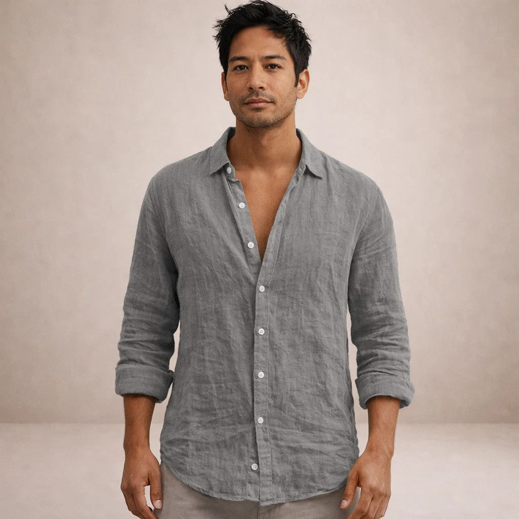 Orizelle | Men's Linen Shirt Long Sleeve Regular Fit - Open Collar Lightweight Casual Summer