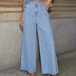 • Two-piece denim set: sleeveless top and wide-leg trousers