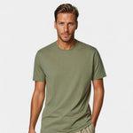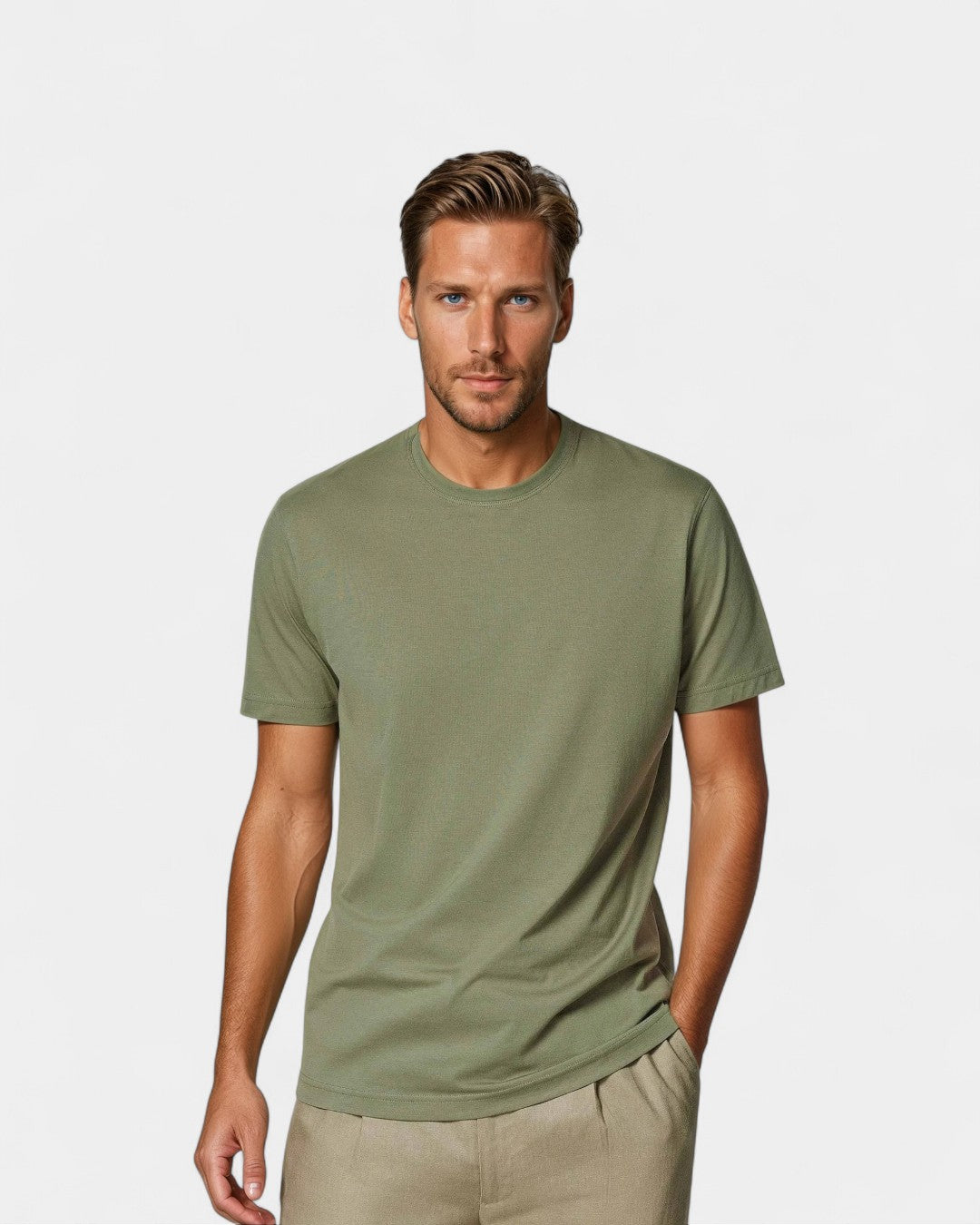 Whether worn under a jacket or on its own, this olive green Supima T-shirt is your go-to for premium comfort and everyday sophistication.