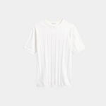 Step into timeless refinement with this White knitted short-sleeve shirt – a sophisticated essential for the modern wardrobe. Featuring a tailored fit with subtle vertical texture, it’s crafted from a breathable, stretch-enhanced knit that combines comfort with structure. Whether paired with linen trousers for a summer evening or dressed down with chinos, this versatile piece radiates understated elegance.
