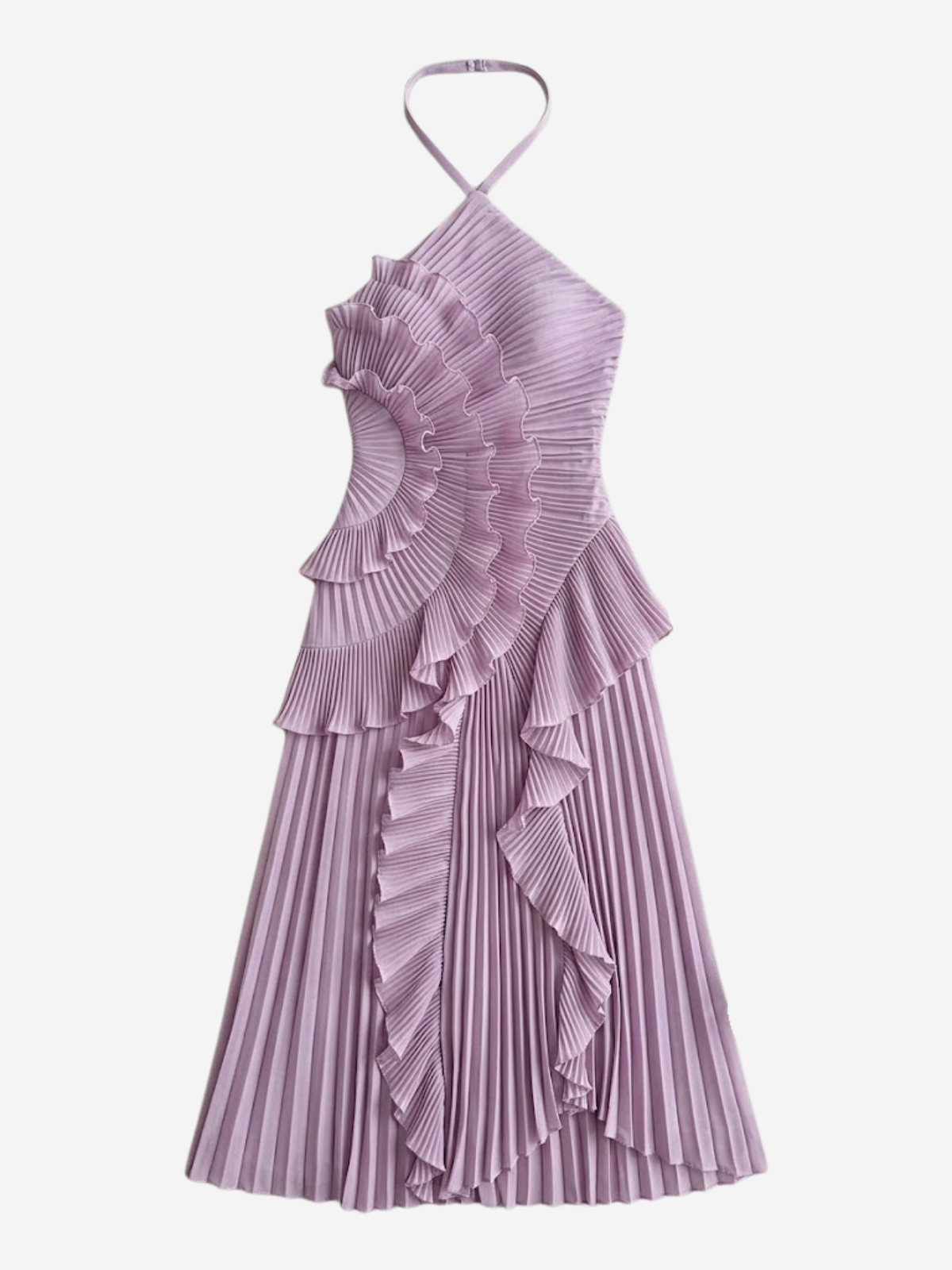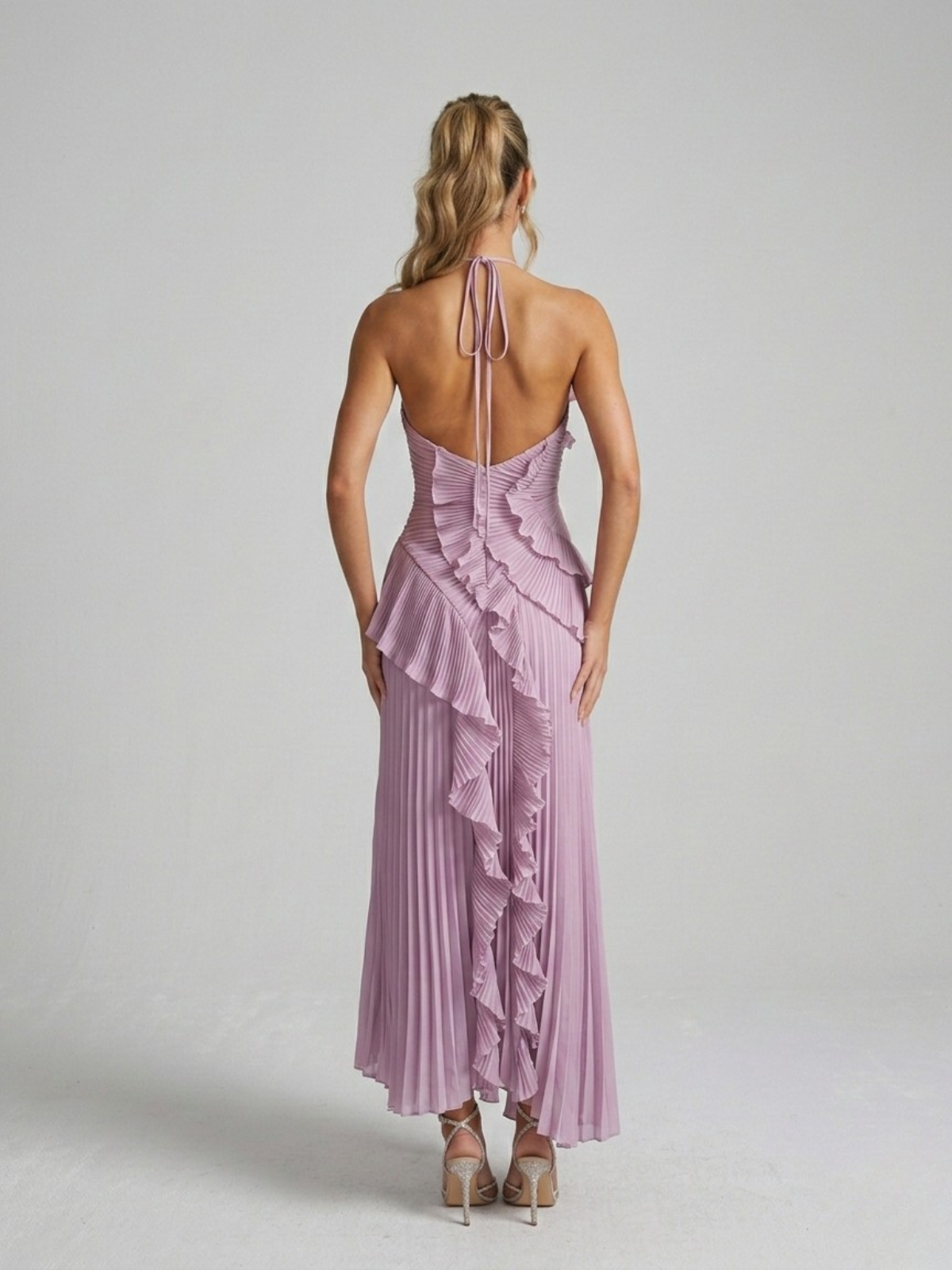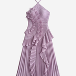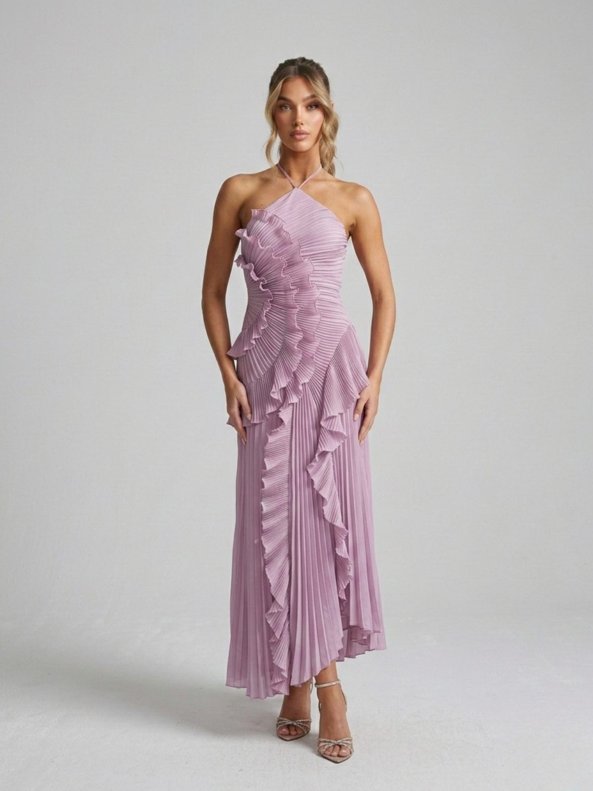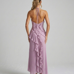 All eyes on you — our Pleated Ruffle Halterneck Maxi Dress is a showstopping occasion piece designed to make a lasting impression. Featuring stunning all-over micro pleating with cascading ruffle detailing that flows dramatically from bodice to hem, creating a truly head-turning silhouette.