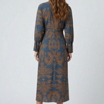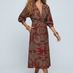 The flowing midi length and long balloon sleeves with buttoned cuffs add a touch of refined elegance, making this the perfect dress for autumn events, dinner dates, or special occasions. Crafted from smooth, lightweight fabric that drapes beautifully and flatters every figure.