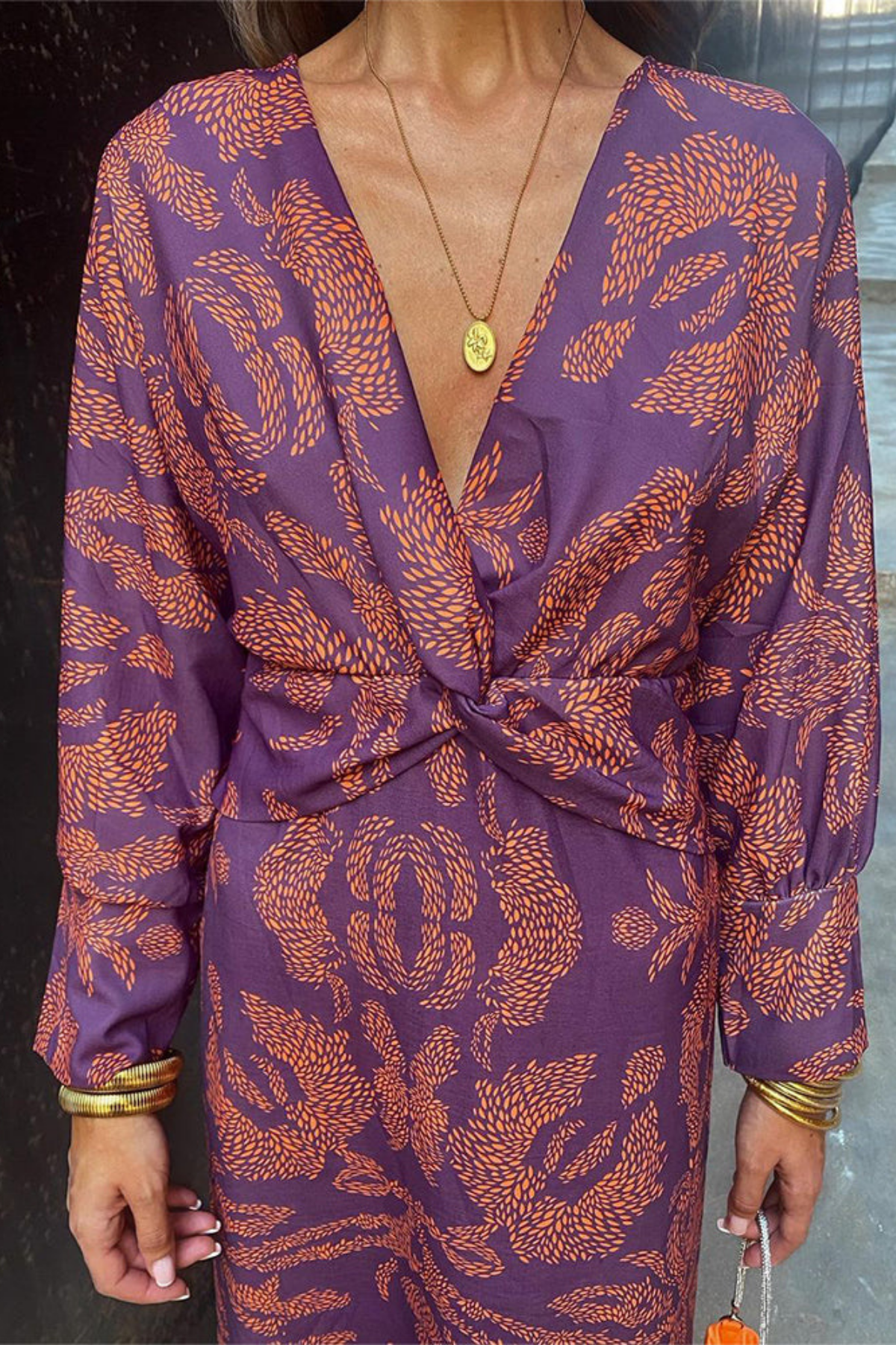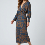 Orizelle | Printed Twist-Front Midi Dress