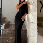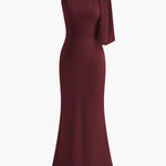 Embrace timeless sophistication with this Elegant Bow Shoulder Maxi Dress, designed to make every entrance unforgettable. Its sleek silhouette gracefully follows the contours of your figure, offering a refined and feminine look ideal for evening occasions or special celebrations. The one-shoulder bow detail adds a touch of charm and balance to the streamlined shape, creating a poised statement of modern glamour. Perfect for formal dinners, weddings, or red-carpet events, this dress is crafted to highlight elegance and confidence in every movement.