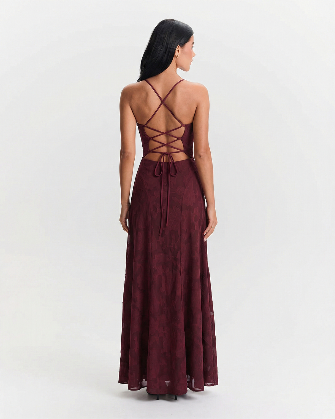 Lace Strappy Back Maxi Dress for Elegant Evening Glamour